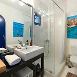 La Agelos Beachfront Villa dispone di un bagno con un bagno con WC separato e una doccia. L'asciugacapelli e i teli da bagno garantiscono un'esperienza confortevole.